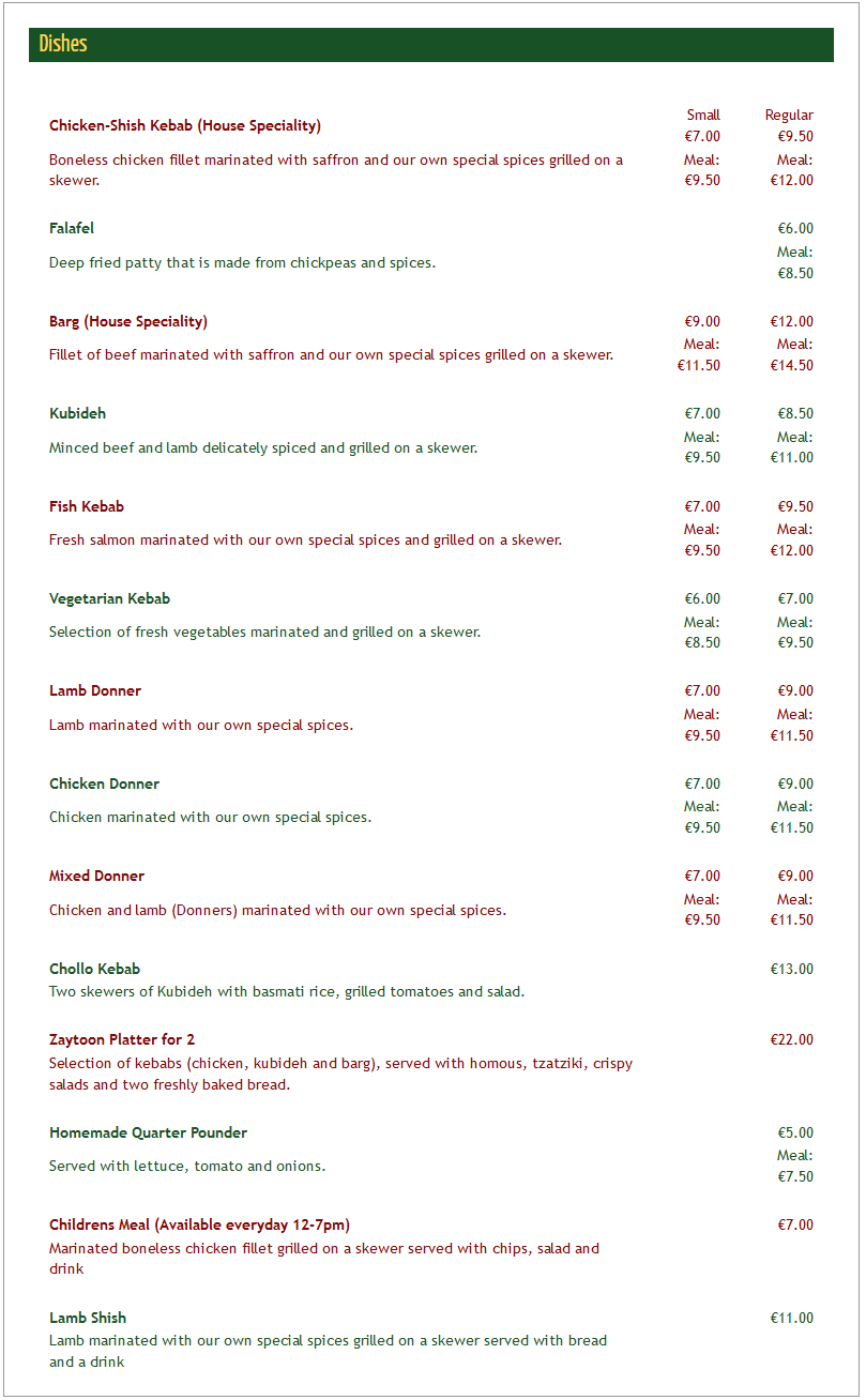Our menu provides a broad selection of Persian and some Western dishes and now with our Customer Discount Card, you can enjoy all of them and receive instant discounts on all regular purchases!